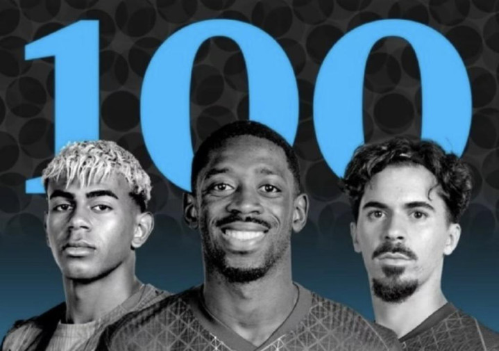 1-登贝莱(巴黎)、2-亚马尔(巴萨)、3-维蒂尼亚(巴黎)、4-姆巴佩(皇马)、5-凯恩(拜仁)、6-哈兰德(曼城)、7-阿什拉夫(巴黎)、8-拉菲尼亚(巴萨)、9-萨拉赫(利物浦)、10-佩德里(巴萨)