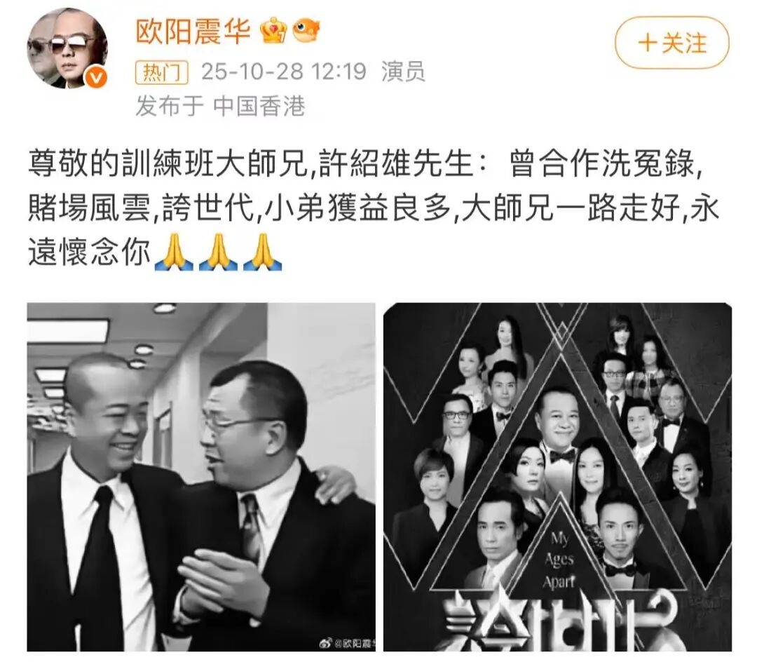 惠英红、欧阳震华、江美仪等演员发文悼念。